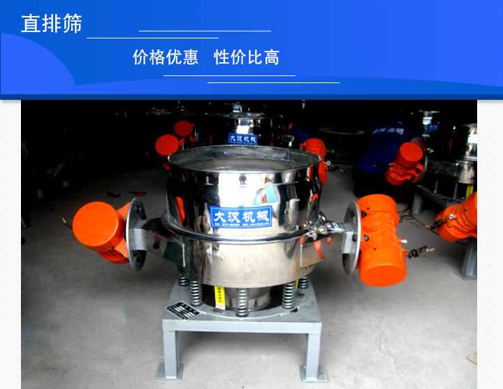 直排篩是一種多用途的,適用于快速大量西顆粒狀物料分級篩分設備,有單電機和雙電機兩種布置方式,其大的特點是物料在篩機中停留時間短,出料迅速,安裝工位低,多用于面粉、淀粉、洗衣粉、金屬粉、添加劑、化工粉料等行業(yè)的顆粒、粉狀的粗略篩分,其處理量大,易于產線結合。用戶在選購時一定要選對廠家,今天小編就為大家推薦一個直排篩廠家——大漢機械。