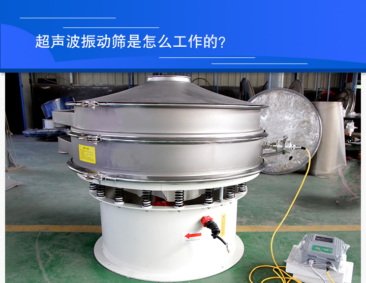 超聲波振動(dòng)篩是在傳統(tǒng)振動(dòng)篩的基礎(chǔ)山增加了一個(gè)低振幅,高頻率的振動(dòng)波。它可以將220V,58Hz電能變?yōu)?8KHz的高頻電能,輸入超聲波換能器,將其變成38KHz機(jī)械振動(dòng),從而達(dá)到高效十篩分和清網(wǎng)的目的,使超微細(xì)粉的篩分成為易事。