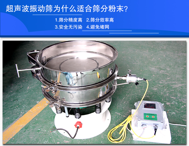超聲波振動(dòng)篩非常有效的解決了因團(tuán)聚、靜電、強(qiáng)吸附性等卡賭網(wǎng)問(wèn)題,減少或者不產(chǎn)生清網(wǎng)時(shí)間,大幅度提升工作效率。